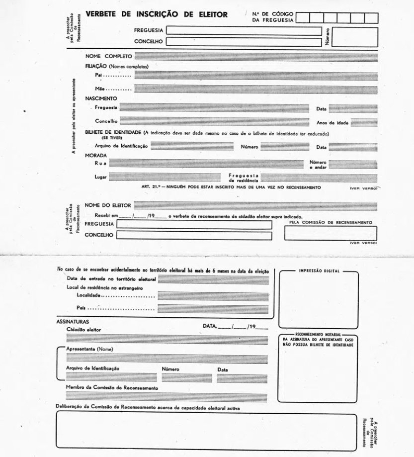 Recenseamento eleitoral não era para todos