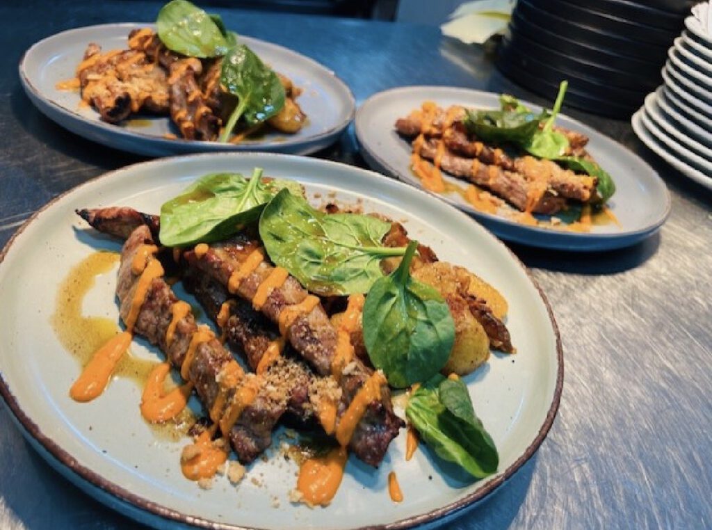 InícioCulináriaLagartos de porco ibérico com gel de pimentos assados