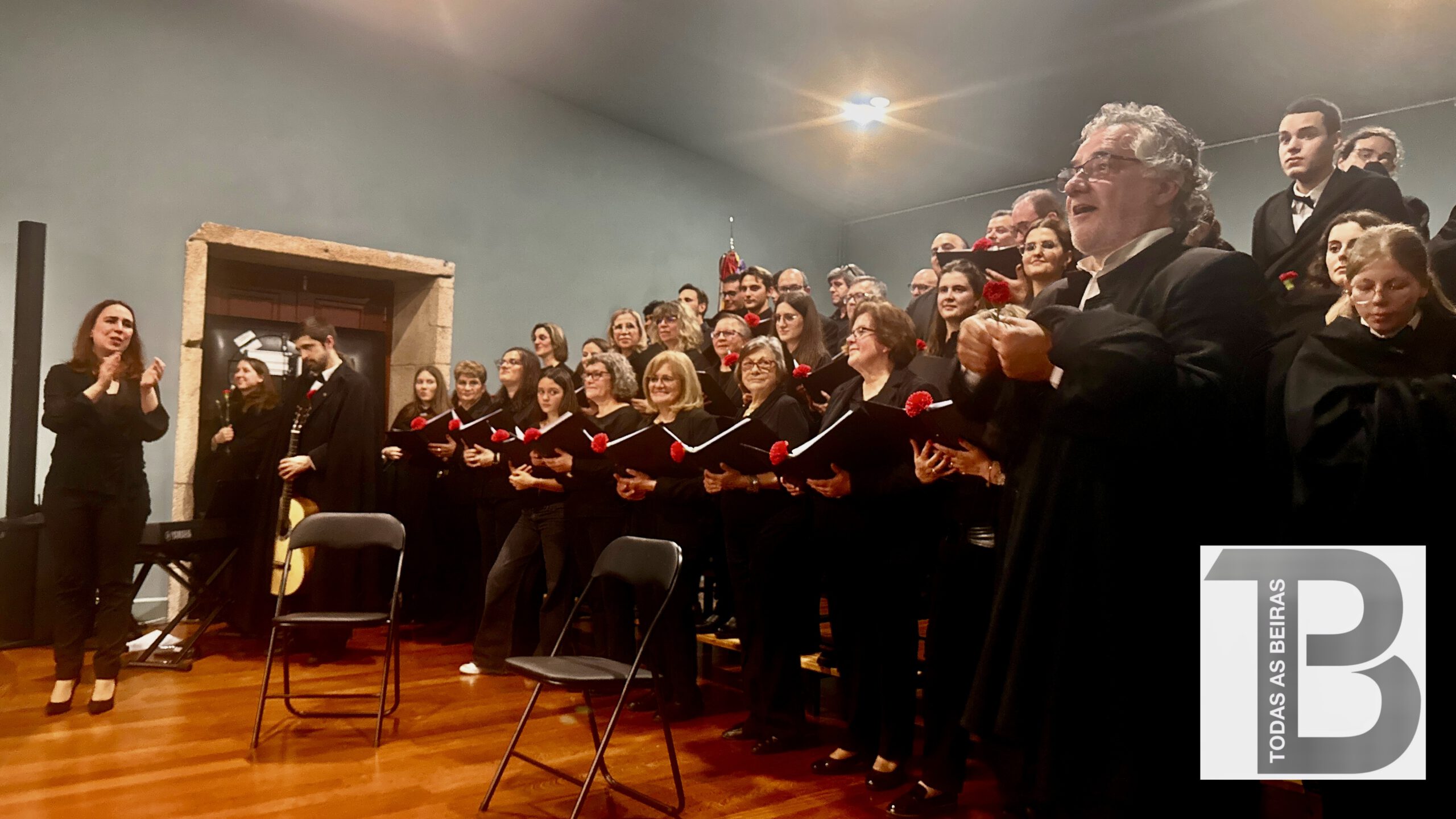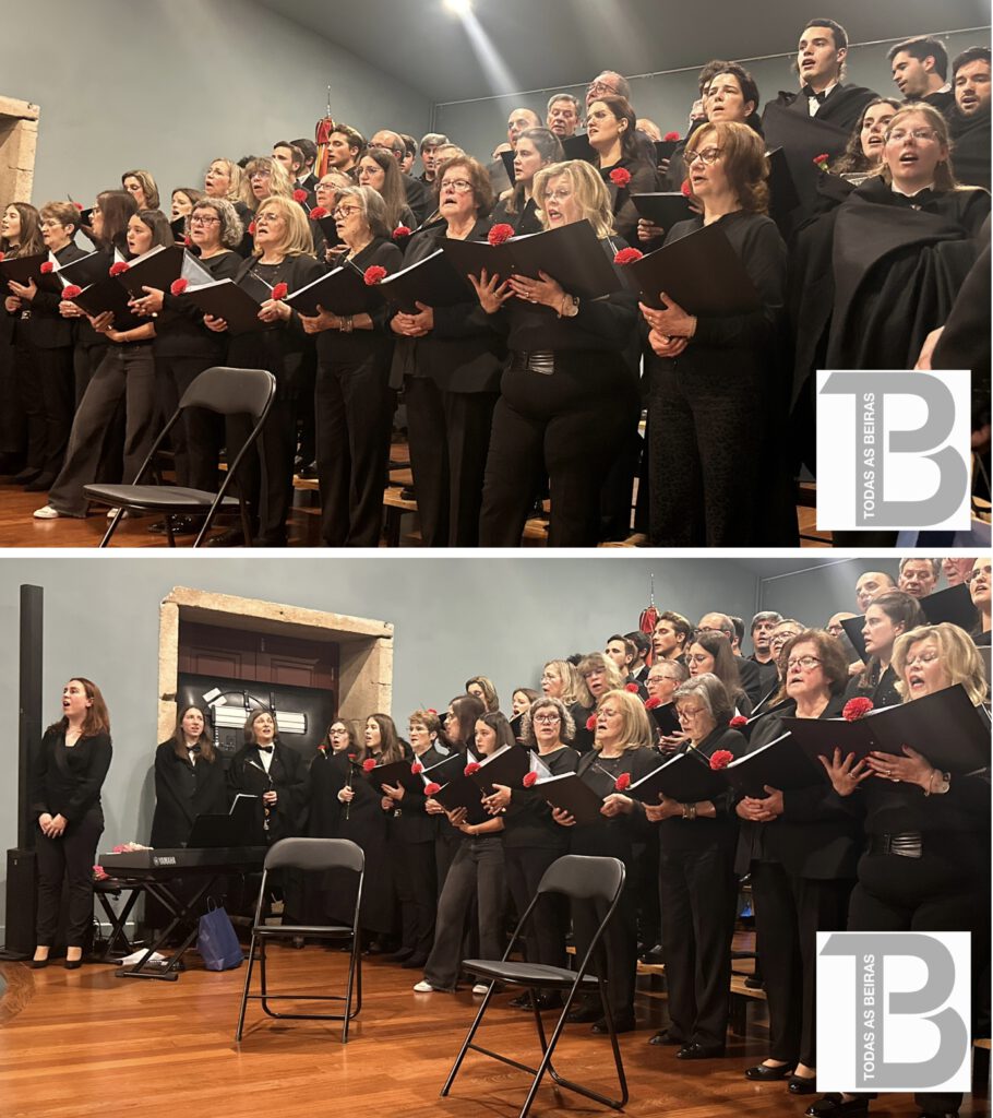 O auditório do Paço da Cultura da Guarda foi pequeno para receber todos quantos quiseram assistir esta noite ao concerto coral comemorativo do 25 de Abril, em que participaram o Orfeon Académico de Coimbra e o Grupo Coral de Maçainhas.